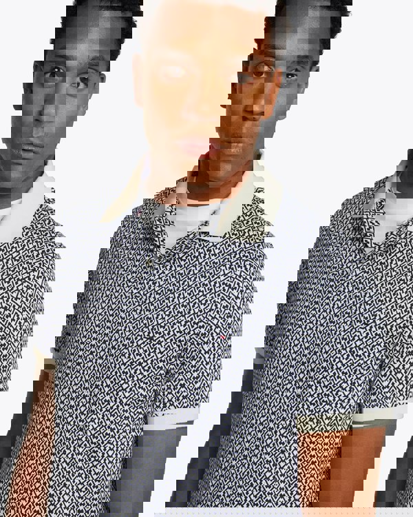 Discover designer men's short sleeve polo shirts with Tommy Hilfiger's Interlock Regular Fit Men's Polo Shirt in Aop Ivory Silk