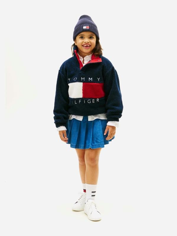 Tommy Hilfiger Kids Heritage Flag Fleece Sweatshirt in navy brings a classic look to everyday outfits. Part of the SS2026 collection, it carries the Tommy Hilfiger flag for a signature finish. The fleece construction adds a soft, cosy feel, making it a practical layer for cooler moments.