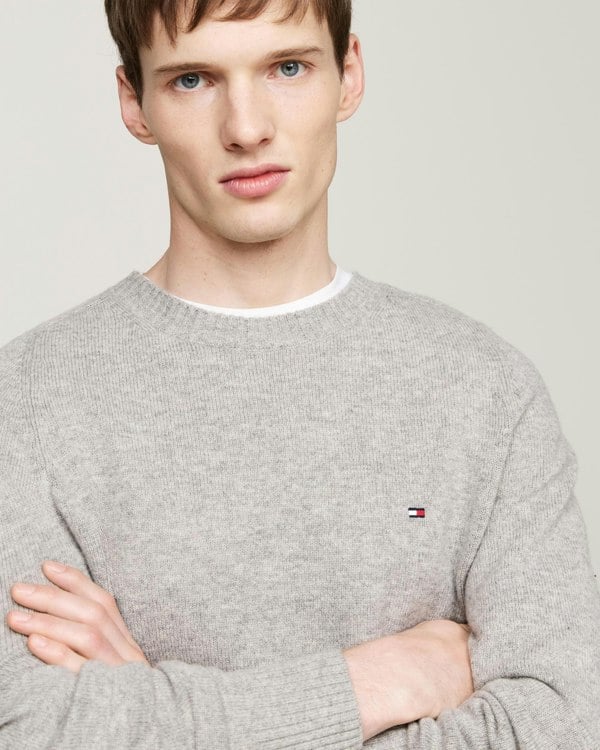 Tommy Hilfiger Lambswool Mens Crew Neck Jumper in Light Grey Heather