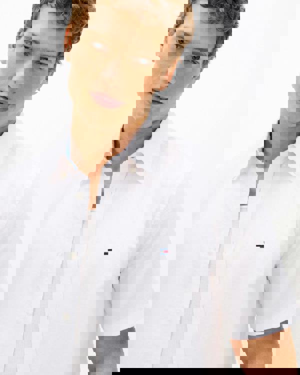Tommy Hilfiger keeps warm-weather dressing crisp with the Linen Blend Solid Mens Short Sleeve Shirt in white. Cut with short sleeves and a clean, solid finish, it offers a straightforward option for everyday wear. The linen-blend composition brings together regenerative cotton and linen for a natural, breathable handle.