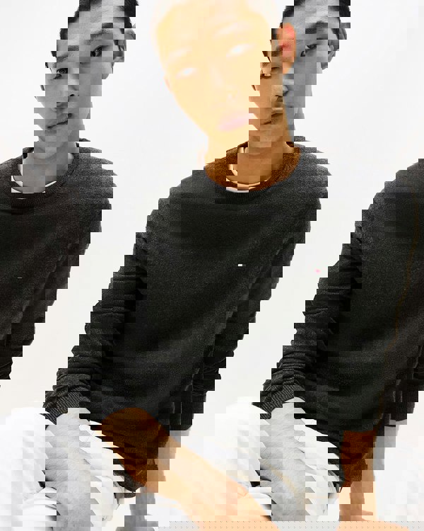 Tommy Hilfiger Organic Cotton Cashmere Mens Crew Sweater in Dark Grey Heather