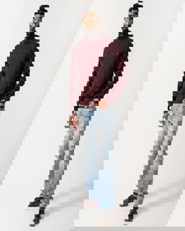 Tommy Hilfiger Organic Cotton Cashmere Mens Zip-Mock Sweater in Deep Burgundy