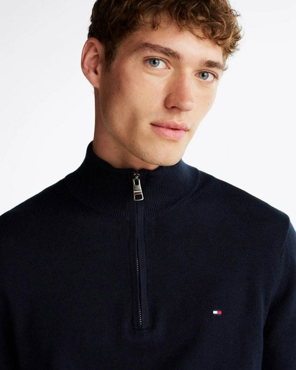 Tommy Hilfiger Organic Cotton Cashmere Mens Zip-Mock Sweater in Desert Sky