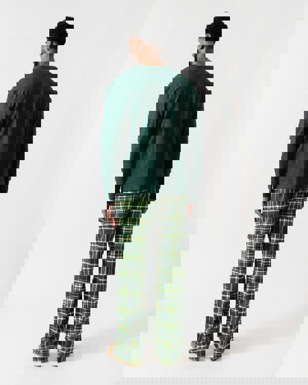 Tommy Hilfiger Relaxed Flannel Print Long Sleeve Mens Pyjama Set in Ornamental Green/Green Tartan