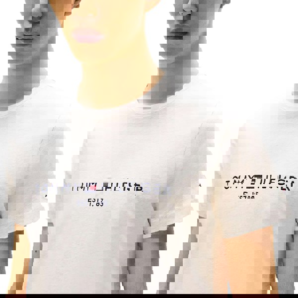 The Tommy Hilfiger Heathered Oatmilk T-Shirt combines technical precision with aesthetic refinement through its tailored slim profile, traditional crew neckline, and proportional short sleeves. This garment elevates casual attire with its sophisticated silhouette, while the meticulously embroidered signature logo represents the brand's heritage craftsmanship and attention to detail.