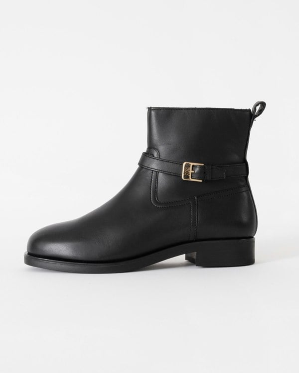 Tommy Hilfiger TH Buckle Womens Riding Leather Booties in Black