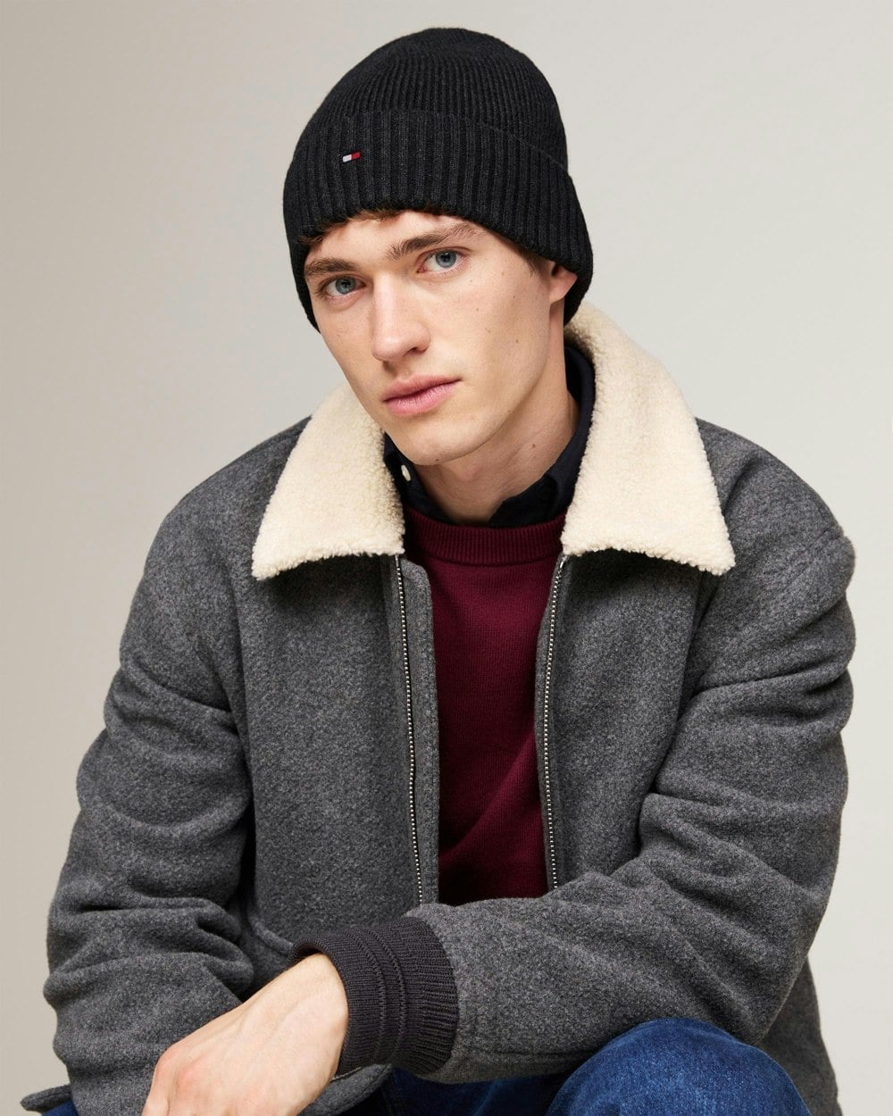 Tommy Hilfiger TH Flag Mens Pima Cotton Beanie in Mid Grey Heather