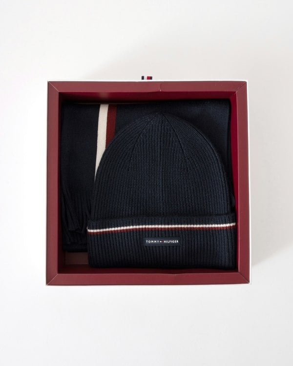Tommy Hilfiger TH Wool Beanie & Scarf Gift Set in Space Blue