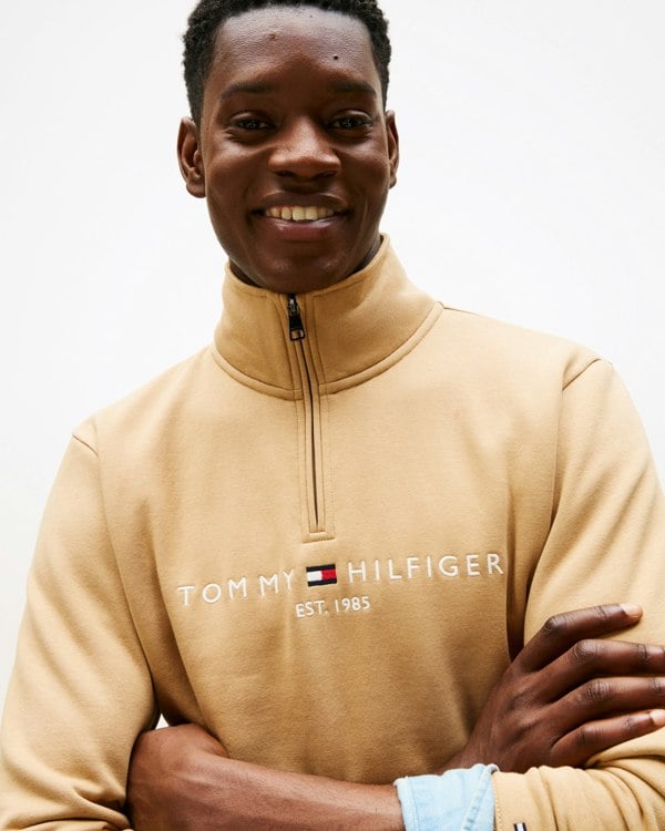 Tommy Hilfiger Tommy Logo Mockneck Mens Sweatshirt in Timeless Camel