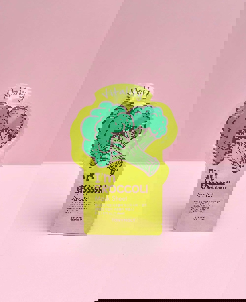 The TONYMOLY I'm REAL Broccoli Mask Sheet Vis packed with antioxidant-rich broccoli extract to revitalise tired skin. Not only is it super cute, this invigorating facial mask sheet features a 3-layer pulp sheet enriched with emulsion-type essence that protects skin from various environmental stressors, reverses the drying effects of pollution & UV rays. Provides vitality & moisture intense to skin appears softer, dewier, invigorated & healthier looking.