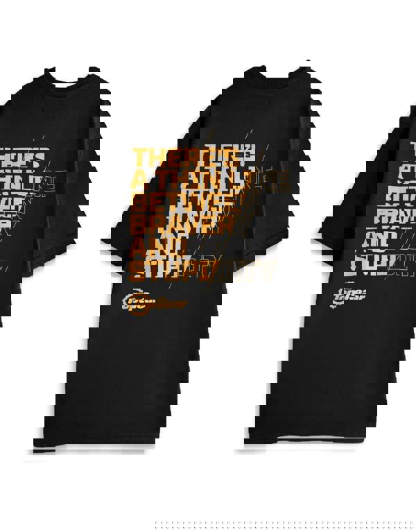 Introducing the Top Gear Unisex Black Short Sleeve Graphic Tee featuring the quote, "THERE'S A THIN LINE BETWEEN BRAVERY AND STUPIDITY"