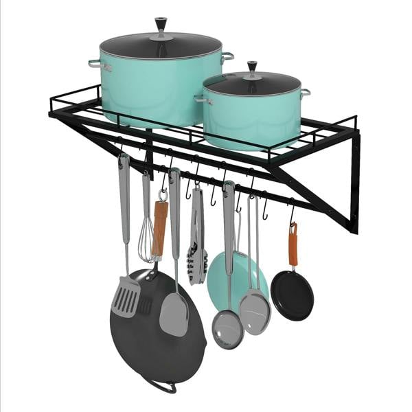 Featuring an innovative 3-in-1 structure the Toque pot and pan rack combines a spacious mesh shelf dual hanging bars and 12 removable hooks. From heavy pots and pans to utensils lids and towels this versatile pot pan organizer adapts easily to your daily cooking needs. The open design allows quick access while improving airflow and drying.