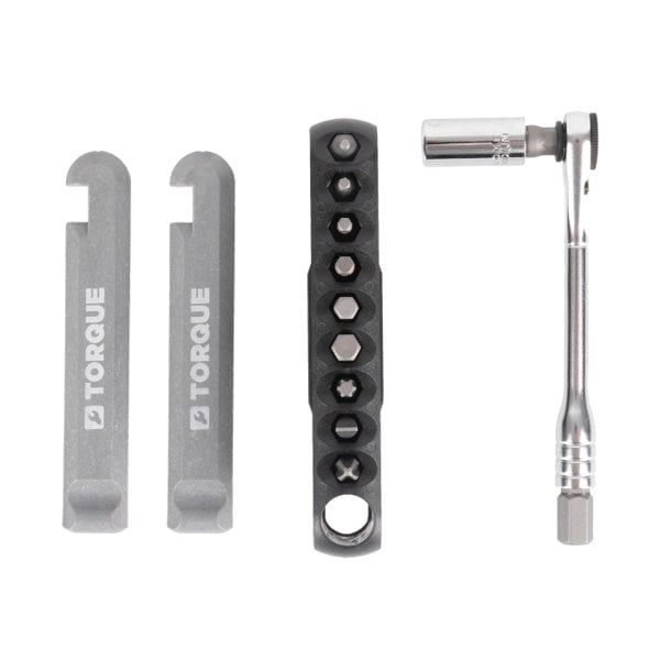 The Torque RT10 Mini ratchet set contains hex bits and tyre levers.