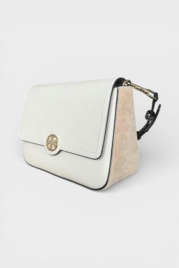 Crafted in a striking cream and New Moon beige colour block, this structured silhouette features the iconic flip flap closure and adjustable shoulder strap for versatile styling.