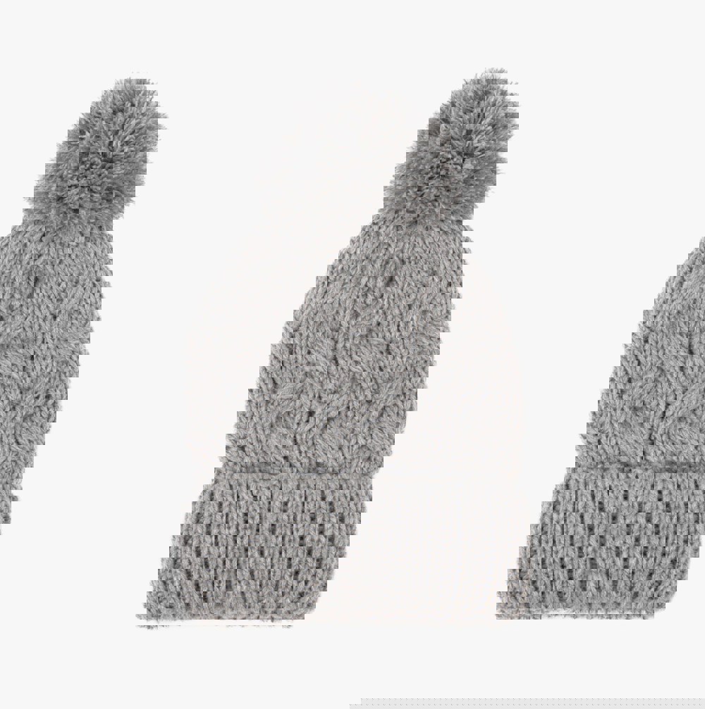 Totes Toasties CABLE KNIT Hat with Pom Pom Womens Bobble Grey