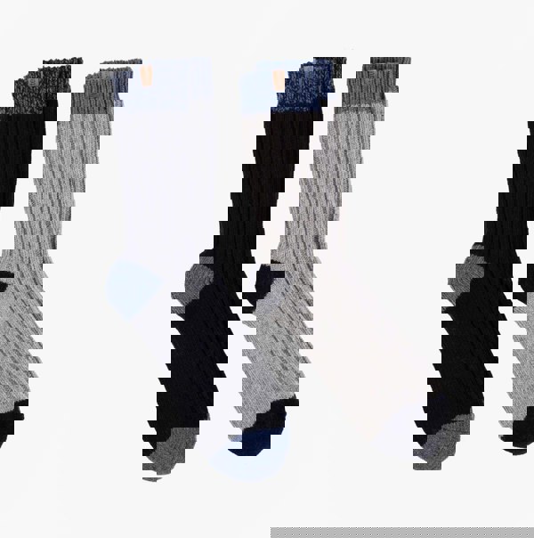 Totes Toasties CHUNKY TWIST WOOL BLEND BOOT SOCKS (TWIN PACK) Mens Navy / Grey