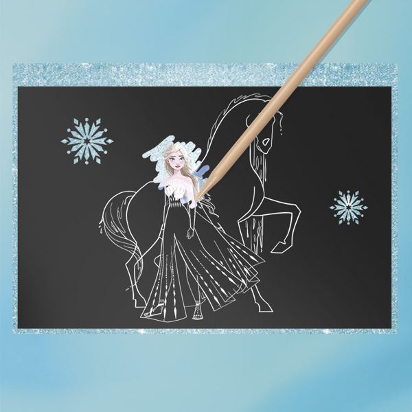 Introducing the Disney Frozen II Scratch Book a delightful, creative wonderland for your little ones. This enchanting set includes 10 scratch cards adorned with intricate designs, each waiting to reveal a sparkling surprise beneath the surface. With the included scratch tool, your child can bring their favourite Frozen characters to life with a simple scratch.