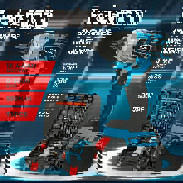 Powerful 3-in-1 cordless brushless impact wrench & drill set – Engineered for both professionals and DIY enthusiasts this 21V high-torque impact wrench delivers up to 550Nm of tightening power with a brushless motor for greater efficiency less heat and longer lifespan. Equipped with 4. 0Ah lithium batteries for extended runtime LED work light for dark spaces and a wide selection of 73 accessories it’s ideal for automotive repair construction and home maintenance tasks.