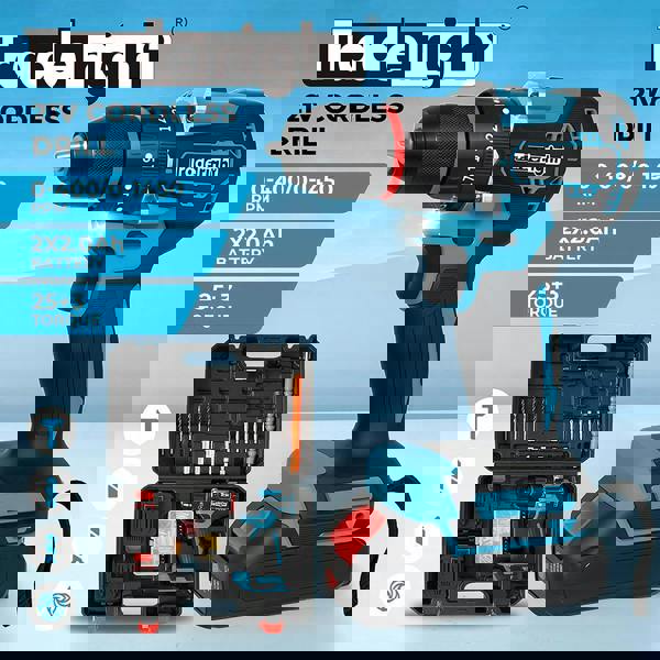 This cordless drill set includes a 96-piece tool kit with essential accessories for a wide range of tasks making it ideal for both professionals and DIY enthusiasts. Whether you're assembling furniture or tackling renovations this cordless drill combo provides the versatility and power you need—all in one complete cordless drill solution.