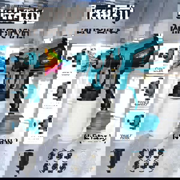 This Traderight cordless paint sprayer is designed to make painting faster cleaner and more controllable for home improvement and DIY projects. Powered by an efficient motor and compatible with 18V lithium-ion batteries it delivers adjustable spray flow for smooth even coverage while reducing paint waste and overspray. With multiple spray patterns and a full set of interchangeable nozzles it easily adapts to walls fences furniture and detailed surfaces helping users achieve professional-looking results without the effort of brushes or rollers.