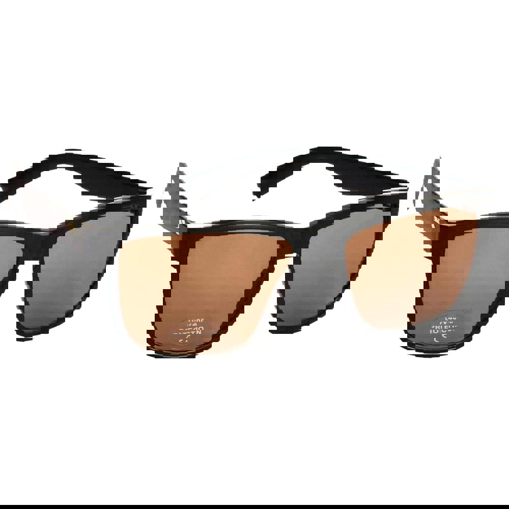 Trespass Adults Unisex Mass Control Sunglasses are designed for everyday wear, offering a clean black look with a matt finish frame and chrome badges. A brown Category 2 lens provides a defined tint for comfortable use in bright conditions, while UV 400 Protection helps to shield your eyes from UV rays.