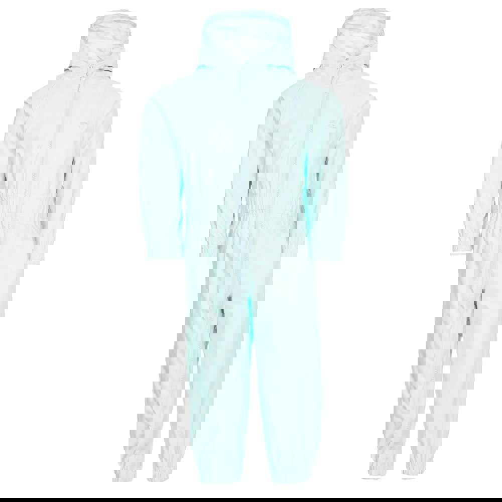 This babies’ rain suit from Trespass comes in pale mint and is made with a 100% polyamide shell with a PU coating. A grown on hood and full body length front zip create a simple, all-in-one design.