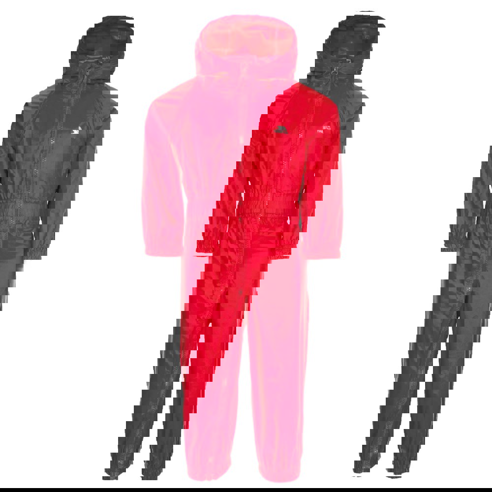 This babies’ rain suit is made with a 100% polyamide shell and finished with a PU coating. It has a grown-on hood and a full body length front zip for straightforward dressing.