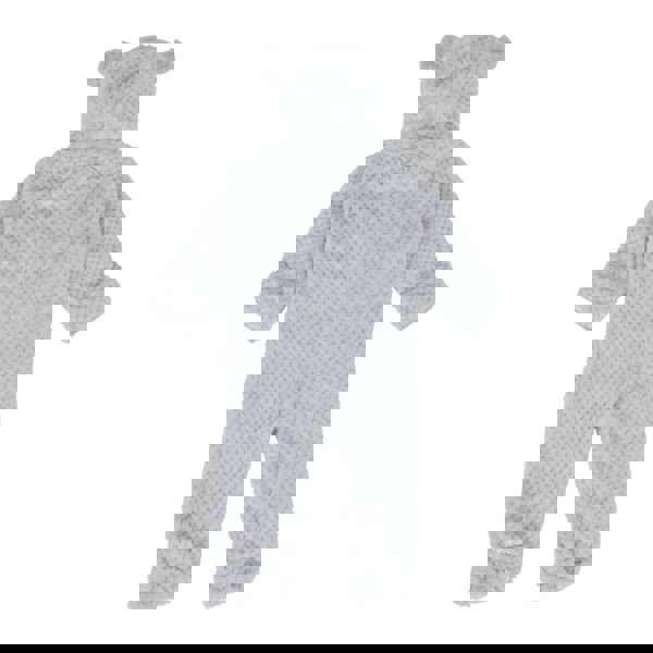 This pale grey babysuit from Trespass has a knitted construction with a hooded neckline and long sleeves. The cuffs have a fitted finish, and the hood is grown on with ear detailing. A front zip fastening is included, along with a pull-on style.