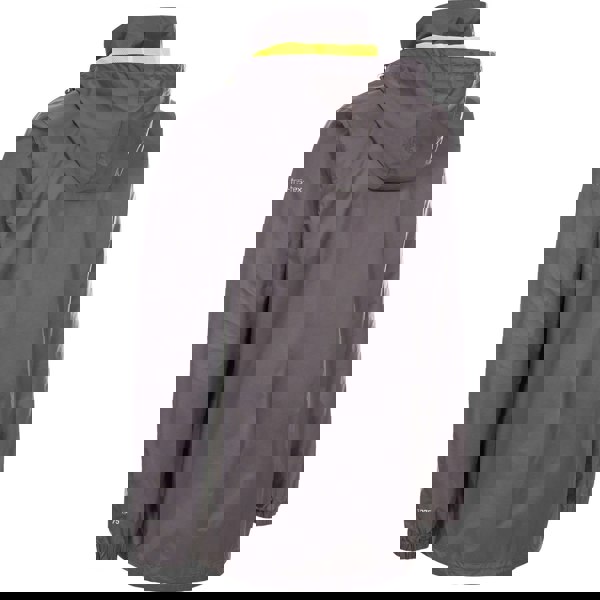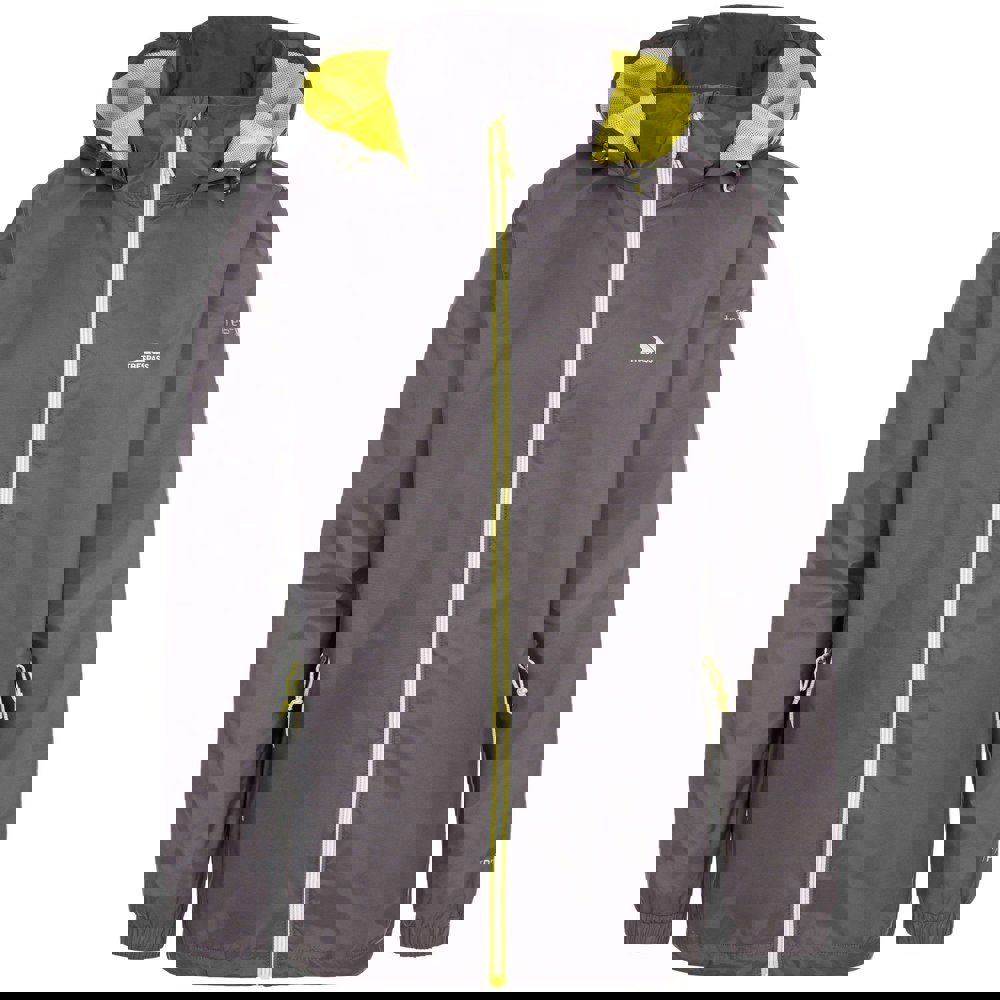 The Trespass Boys Briar Jacket in carbon has a contrast design with logo detailing. A collared neckline and long sleeves create a clean, structured look, while a grown on hood adds extra coverage.