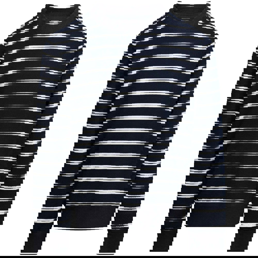 This long-sleeved top comes in a knitted fabric with a contrast stripe design in navy. It has a crew neck with a ribbed finish, plus ribbed cuffs and a ribbed hem for a neat, structured look.