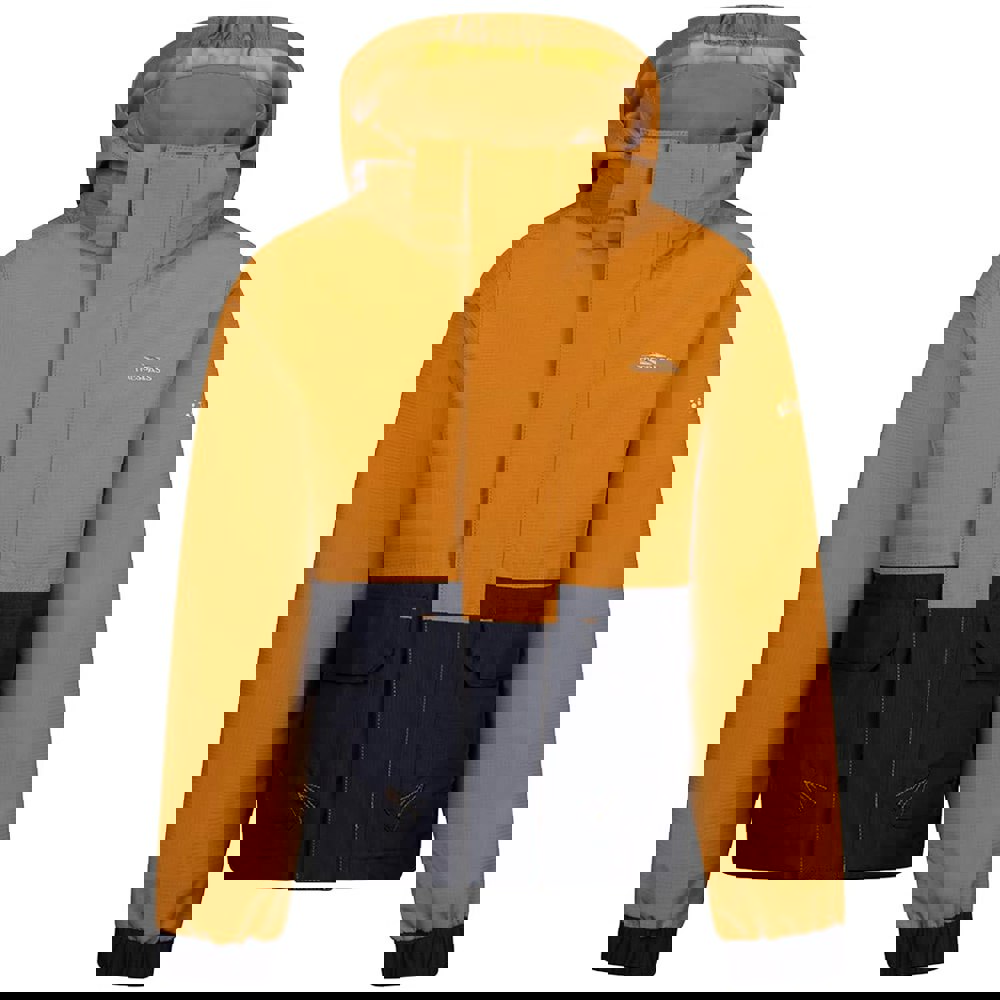 This boys’ Zeppe TP50 waterproof jacket from Trespass comes in Ginger with a plain finish, contrast detailing and a logo. The outer and lining are both made from 100% polyester, with ripstop fabric and a TPU membrane. A hooded neckline and long sleeves create a practical shape, finished with elasticated cuffs.