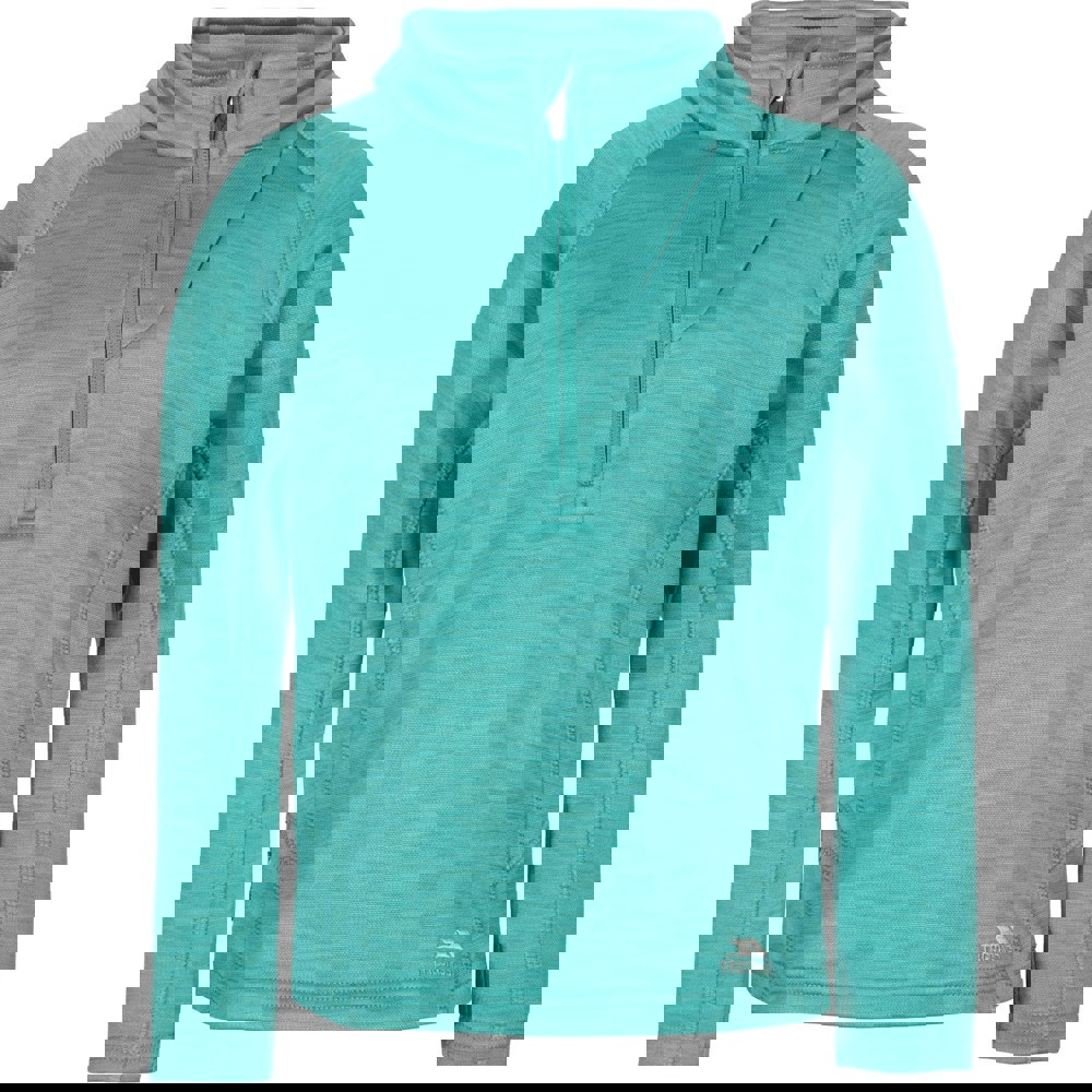 This children’s Celina fleece from Trespass comes in Green Ocean Marl with a marl fleece fabric and a brushed back. It has a half zip neck with a chin guard, plus a concealed zip pocket for small essentials. Flat cuffs and cover stitched seams complete the finish.