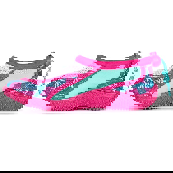 These girls’ aqua shoes from Trespass come in a Pink Lady print with a lightweight build and slip-on design. A draw string fastening helps secure the fit, while the breathable mesh and stretch fabric construction provide comfort during wear.