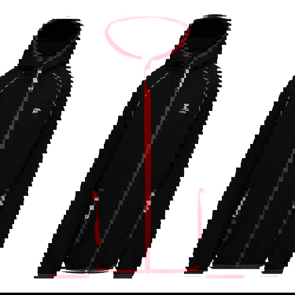 This children’s Belmoon softshell jacket from Trespass comes in black with a plain finish and logo detail. Made from a knitted softshell outer of 95% polyester and 5% elastane, it has durable, flexible fabric technology for everyday wear.
