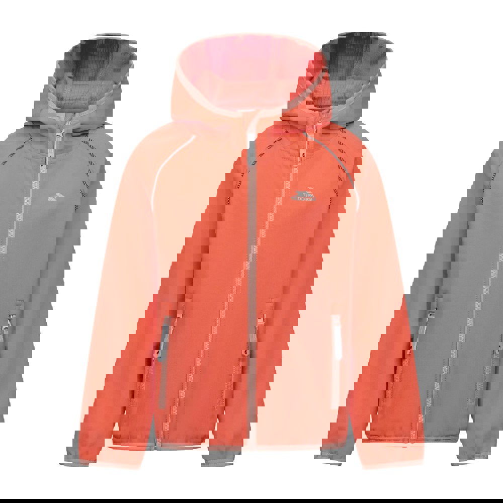 This children’s Belmoon softshell jacket comes in soft orange with a plain finish and logo detail. The outer is made from 95% polyester and 5% elastane, with a knitted softshell fabric construction. Durable and flexible fabric technology is paired with binding detail and reflective piping for a clean, practical look.