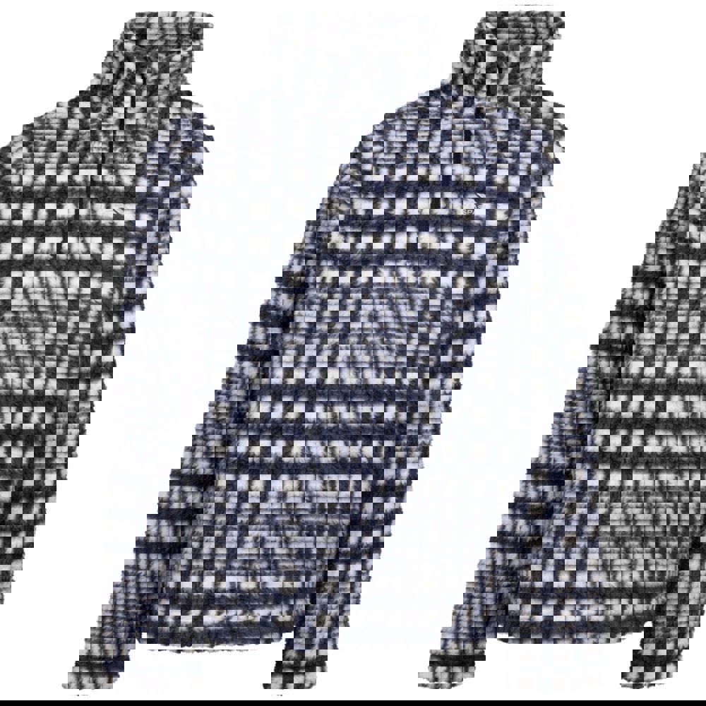 Made from 100% polyester, this Trespass Booker AT200 fleece top combines a knitted, soft-touch finish with a practical half zip. The standing collar and pull-over style create a neat, streamlined look, while the extra-long sleeves add coverage. A navy base is finished with an all-over checked print and logo detailing.