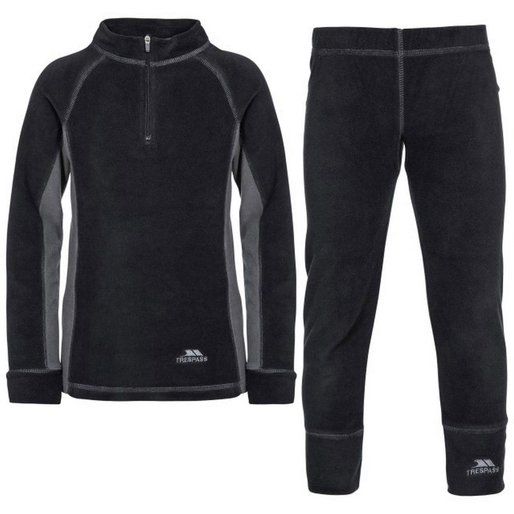 This children’s base layer set includes a thermal top and matching bottoms in fleece fabric. Made from 100% polyester, it has a lightweight feel and a slim fit for wearing under regular clothes on colder days.