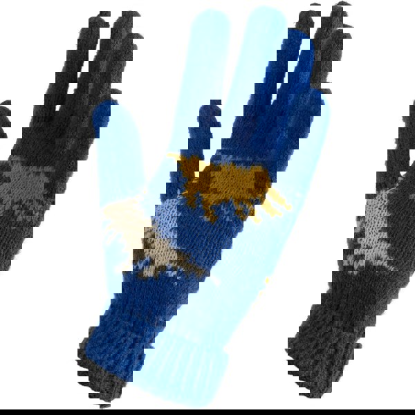 These Trespass Casper gloves for children come in blue with a repeat dinosaur print. Made from 95% acrylic and 5% elastane, they offer a flexible finish for everyday wear. A ribbed, turned-up cuff adds a neat edge, while a woven label completes the look.