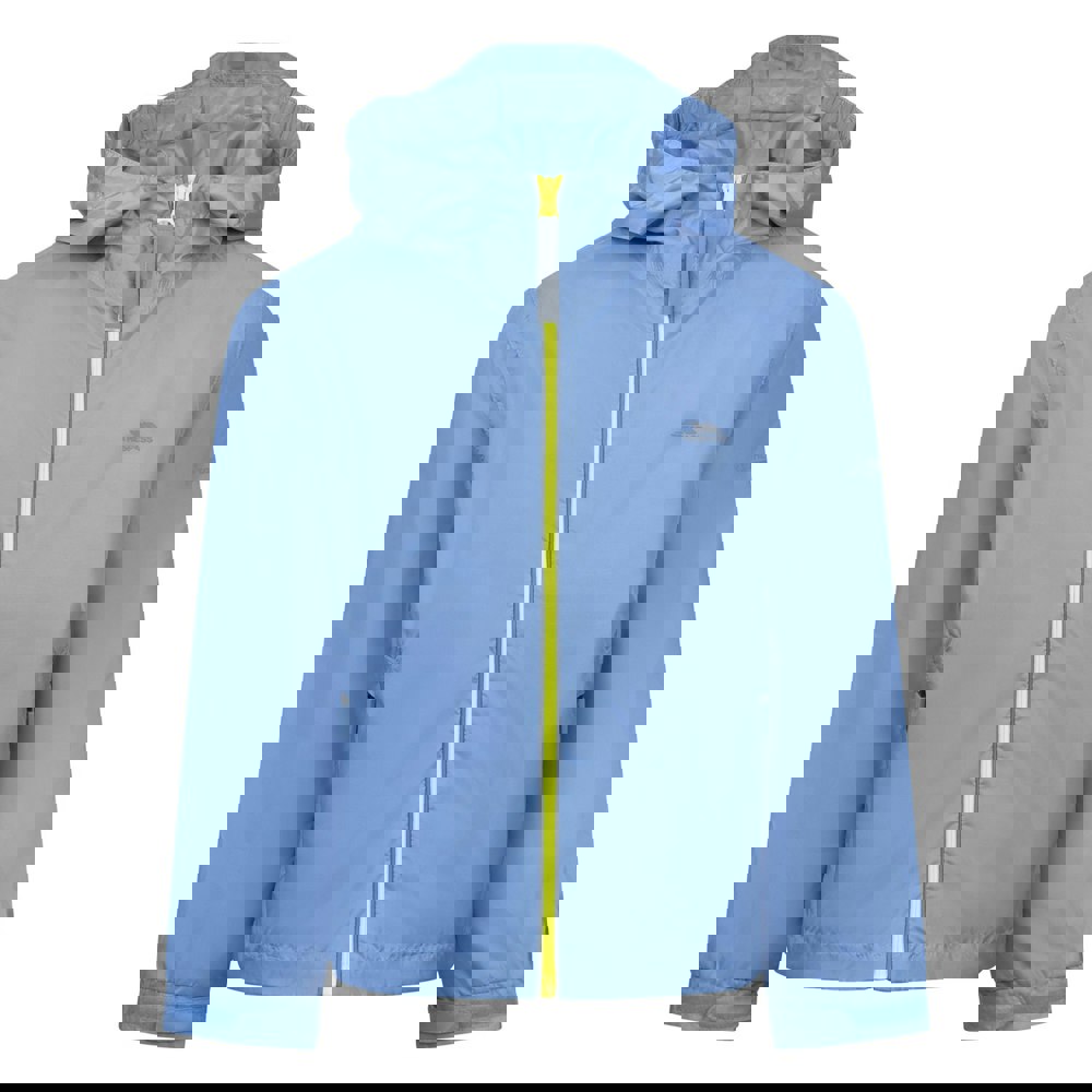 This children’s Fernmore Dripdrop rain suit from Trespass comes in cornflower with a logo and umbrella design. It has a hooded neckline with a sew-on hood, long sleeves, and elasticated cuffs and hem. A full zip fastening completes the front.
