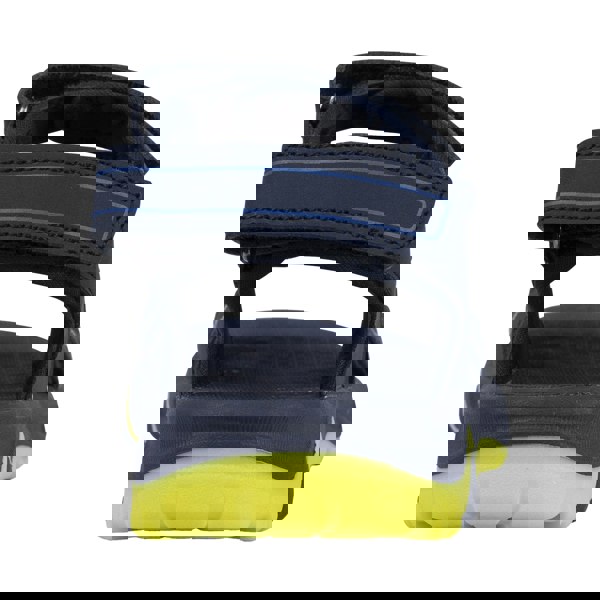 These children’s Jett sandals from Trespass come in navy with a plain finish, contrast detailing and a logo. The upper combines PU (polyurethane) and textile, paired with a cushioned EVA insole. A flat profile and lightweight, flexible construction keep the shape simple, while breathable fabric technology supports everyday wear.