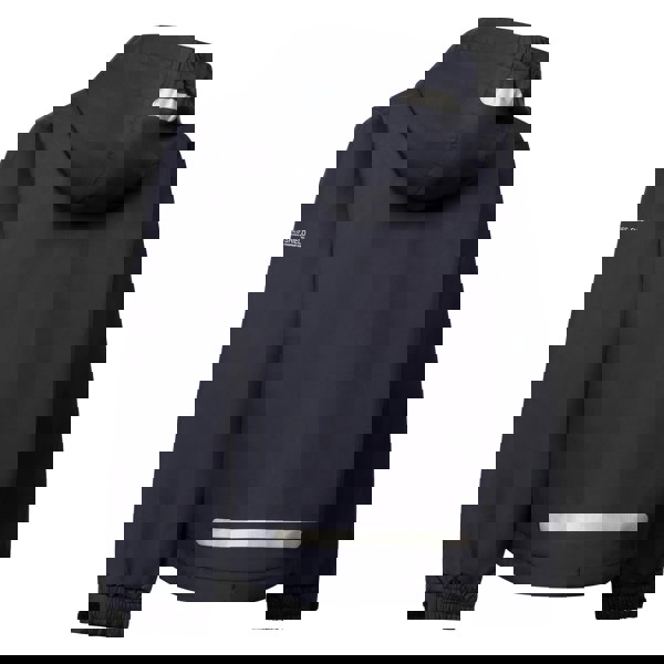 This children’s Malio waterproof jacket comes in black with a plain outer and logo and printed detailing. It is made from 100% polyester with a printed lining in 100% polyester. The hooded neckline includes a grown-on hood, and the long sleeves are finished with adjustable wrist straps.