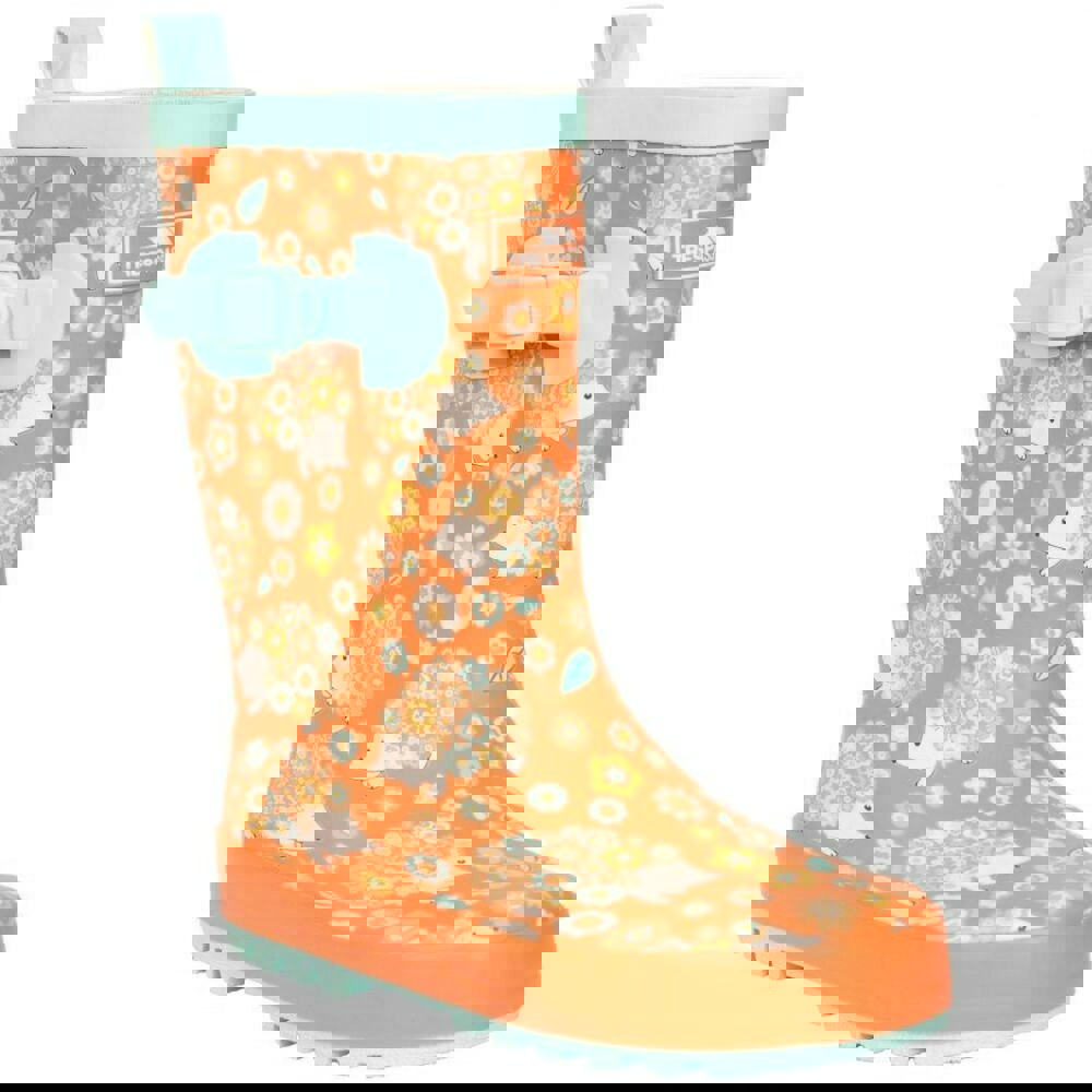 These Trespass children’s puddle wellington boots come in a multicoloured hedgehog print and a calf-length cut. Made from 100% rubber, they have a flat sole and a pull-on shape for straightforward wear. A pull tab supports getting them on and off, while an adjustable belt provides a secure fastening.