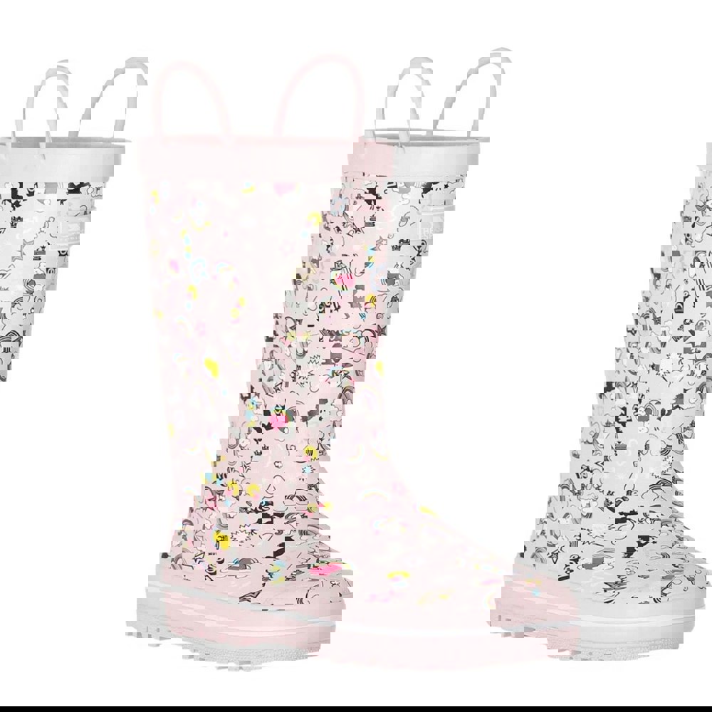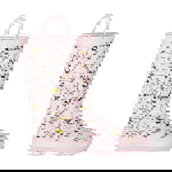 These children’s Starryton wellington boots from Trespass come in pink with a printed rainbow and unicorn design, finished with text and a rubberised logo. The upper is made from waterproof rubber, paired with a textile lining and an EVA insole. A cushioned footbed adds comfort underfoot, while the round toe and flat heel keep the shape classic and practical.