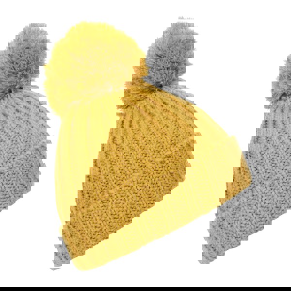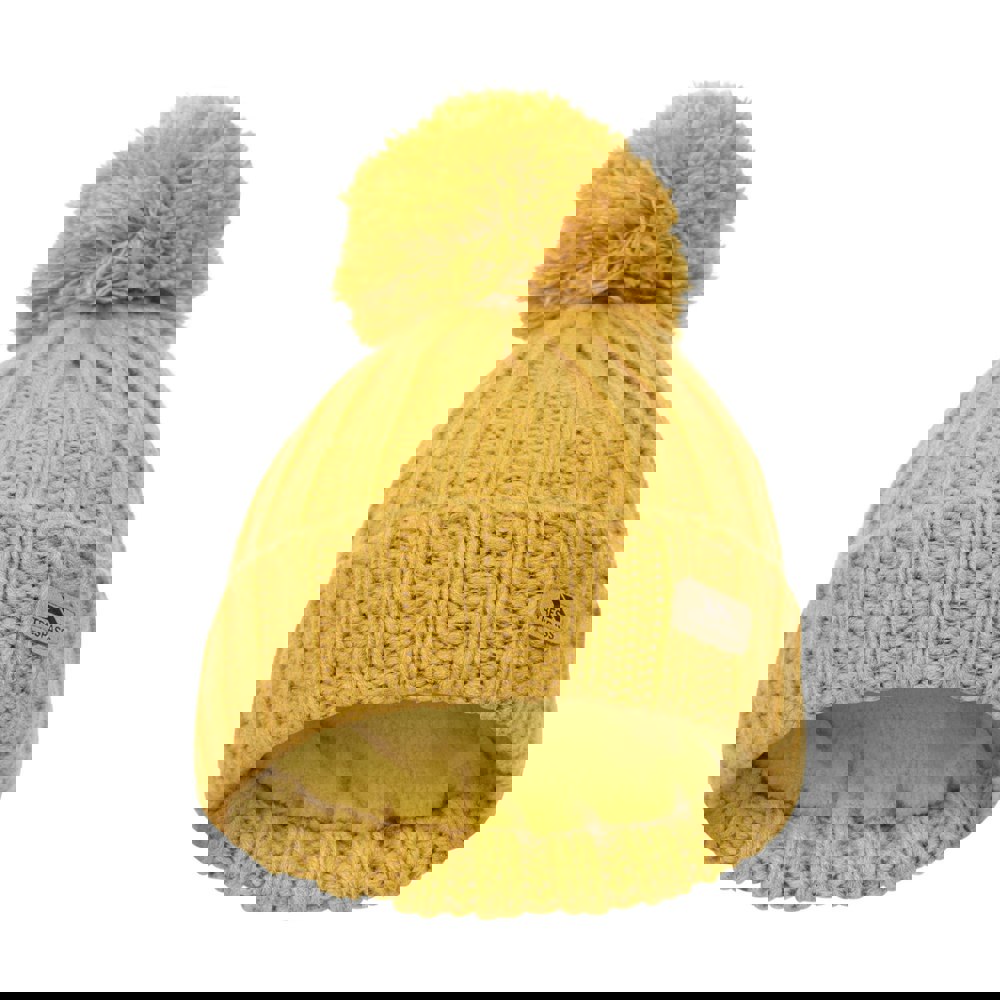 This children’s Thorns bobble hat comes in Honeybee and has a knitted outer with a fleece lining. A turned-up cuff adds a defined finish, while a bobble top completes the look. A leatherette badge sits on the cuff for a neat branded detail.