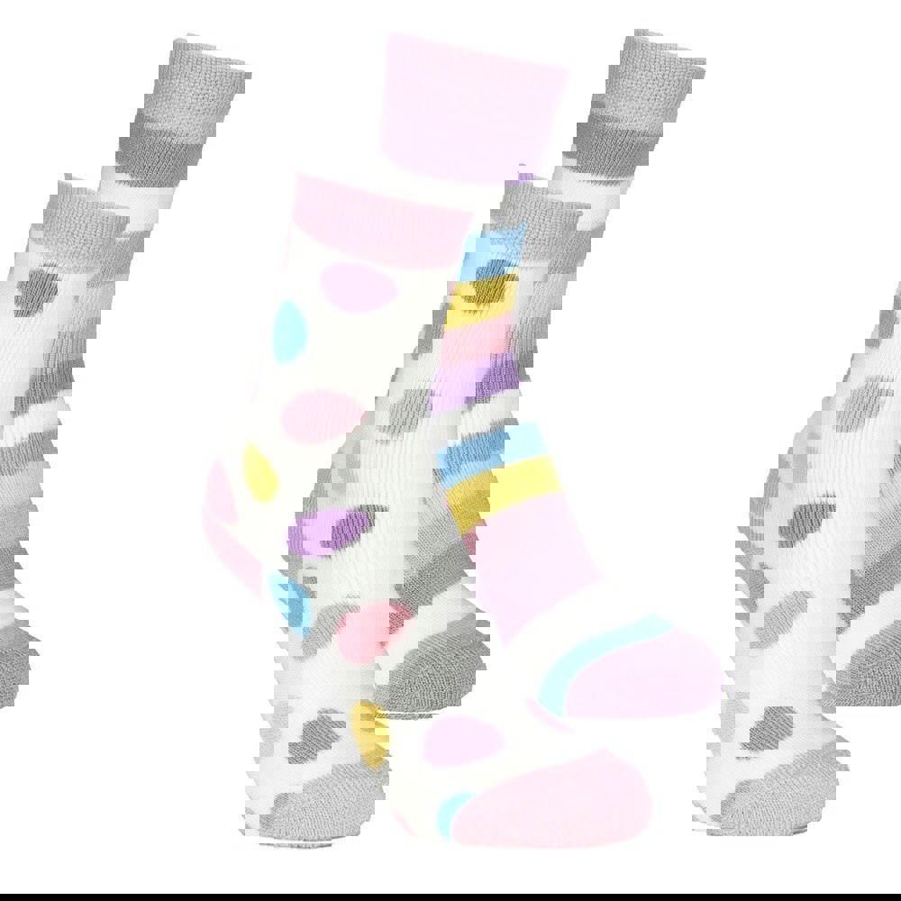This pack of four boot socks from Trespass comes in pink with a patterned look. The design combines contrast detailing with dotted and striped elements for a varied finish. Made from acrylic, each pair has a ribbed construction and a soft-touch feel.