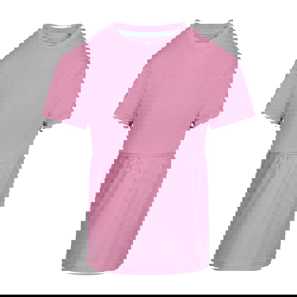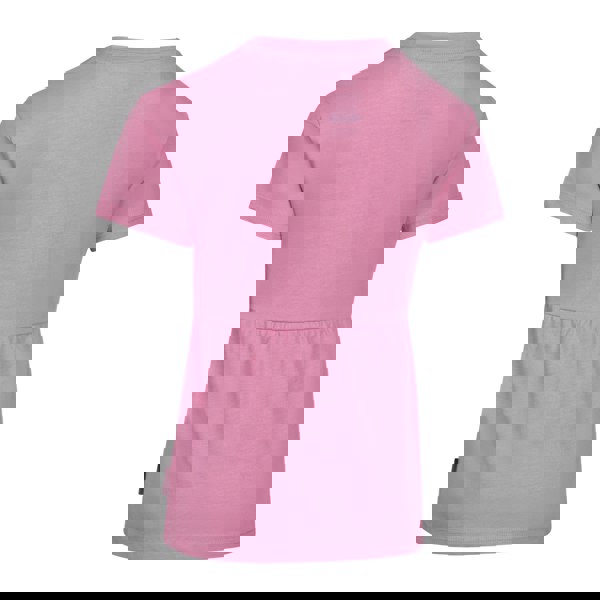 In sweet pink, the Trespass Girls Maru Top keeps the look clean with a plain finish and a soft knitted fabric. The blend of 60% cotton and 40% polyester offers a practical everyday option, while the short sleeves and round neckline create a simple, easy-to-wear shape. A taped neck detail adds a neat touch, and the gathered yoke and gathered waist bring subtle structure to the silhouette. A branded tab completes the design with a small signature detail.
