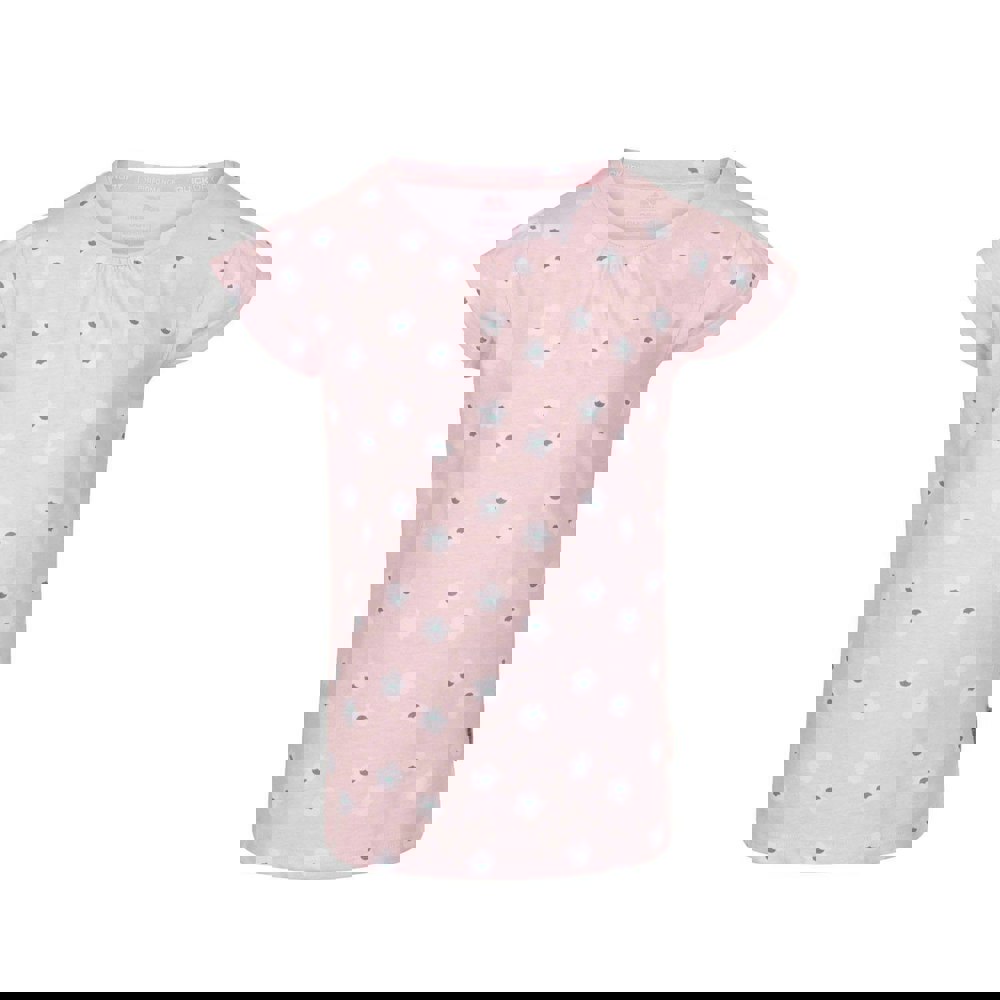 This girls’ Trespass Present T-shirt comes in pink with a floral design. Made from a cotton and polyester blend, it has a crew neckline with pleated detailing and short sleeves.