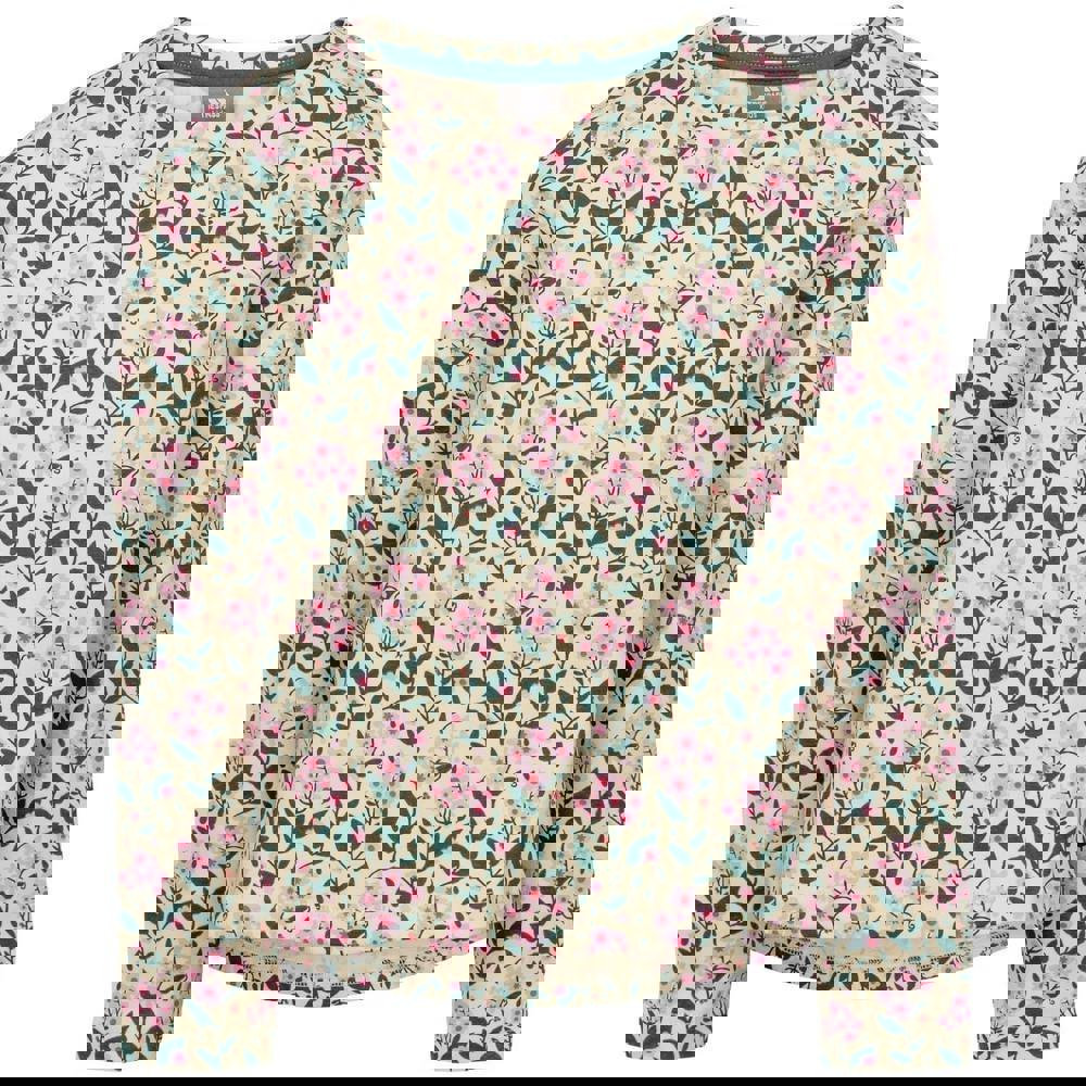 This girls’ Romilee top from Trespass comes in spring green with a plain finish. It has a crew neck and cold shoulder sleeves, finished with ruffle detailing for a defined shape through the upper arm.