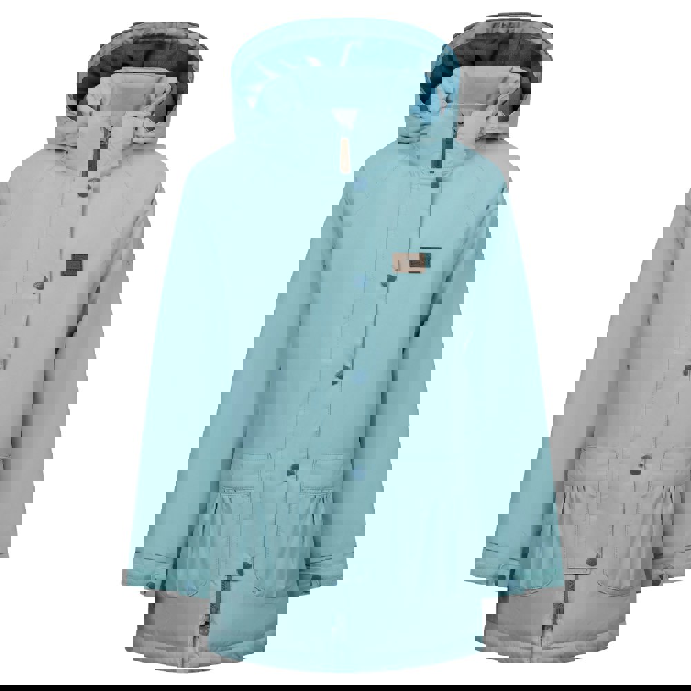 This girls’ Roselettie raincoat comes in light teal with a plain finish and a woven construction. It is made from 100% polyester with a PVC shell and a soft lining. The coat is padded and cut with a hooded neckline, long sleeves and a dipped hem.