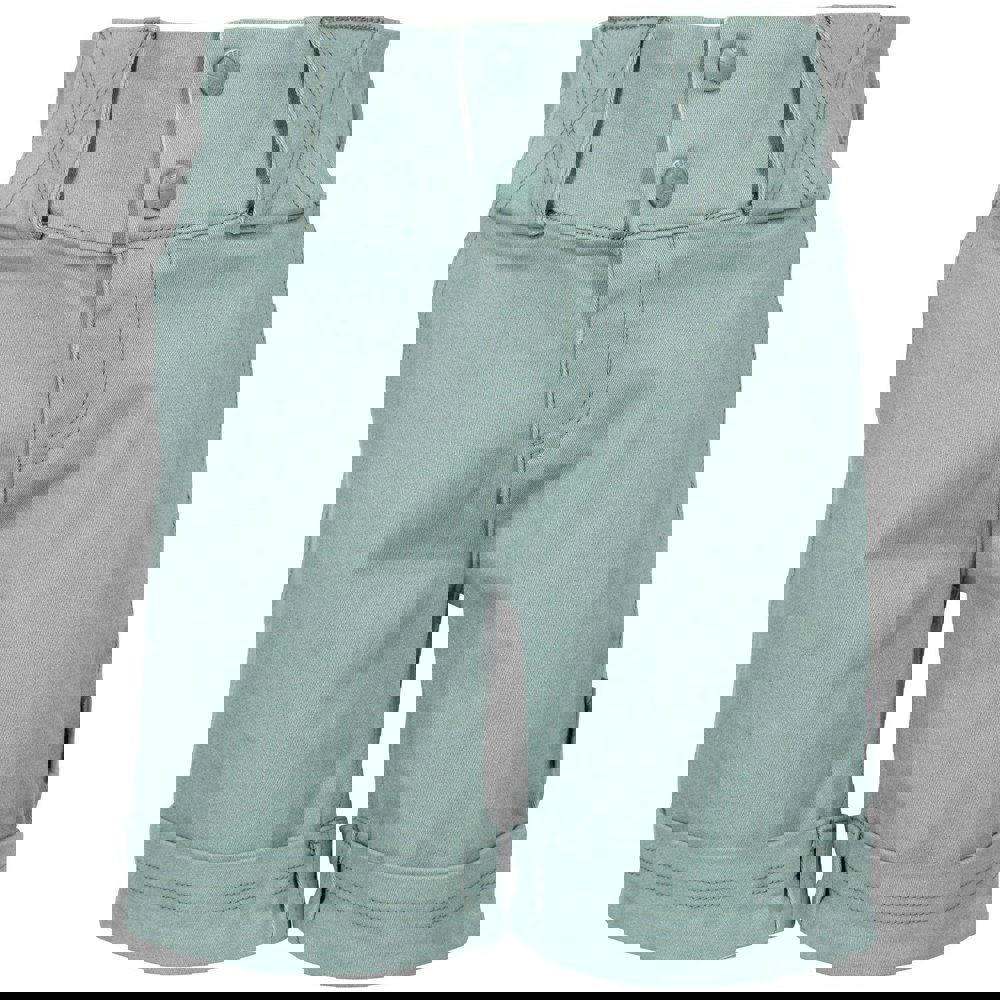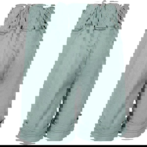 Trespass Tangible shorts for girls come in teal mist with a plain design and a woven finish. The waistband combines a mock drawcord with a part-elasticated fit, alongside a mock fly for a neat look. Belt loops complete the waist detailing.